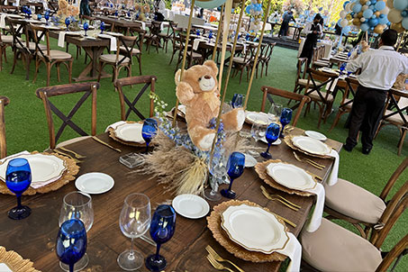 Nos comprometemos a hacer de tu evento una experiencia inolvidable. Ofrecemos mobiliario de alta calidad y un servicio personalizado asegurandonos que cada detalle se ajuste a tus necesidades y expectativas.